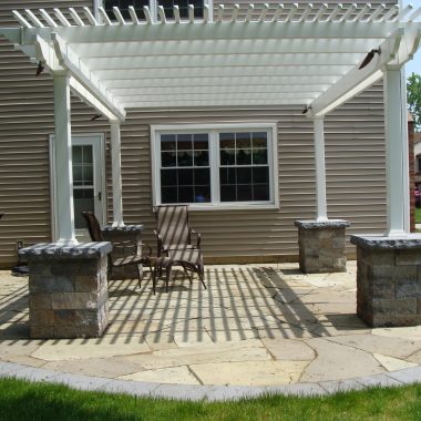 Bluestone Patio with Cultured Stone Piers in Southampton, NJBluestone Patio with Cultured Stone Piers in Southampton, NJ